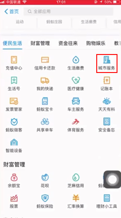 - 2在“便平易近糊口”中选择“城市办事”。