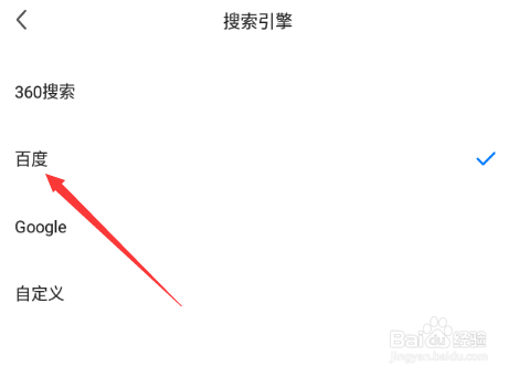 然后在界面中点击百度,这样360浏览器的搜刮引擎就是百度了。