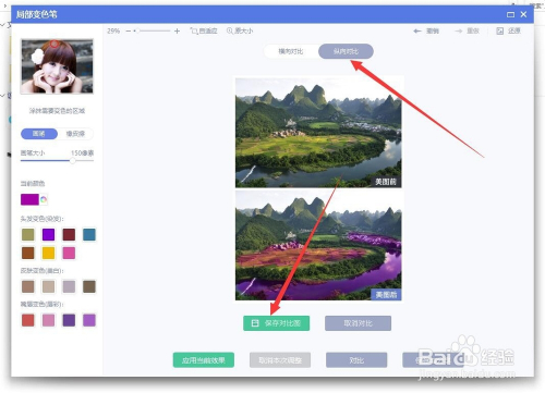 进行前后两张图片的对比,有横标的目的对比和纵标的目的对比两种展示模式。这样就完当作了图片的局部变色笔结果的建造。