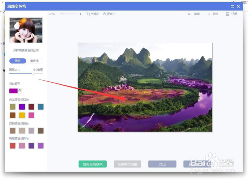 选择完当作后,在图片需要变色的区域进行画笔的涂抹即可。
