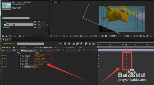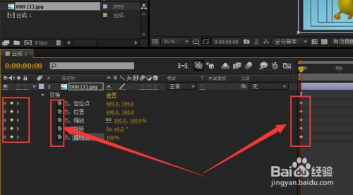 素材的属性有良多,就像最根基的:定位点、位置、缩放、扭转以及透明度等。