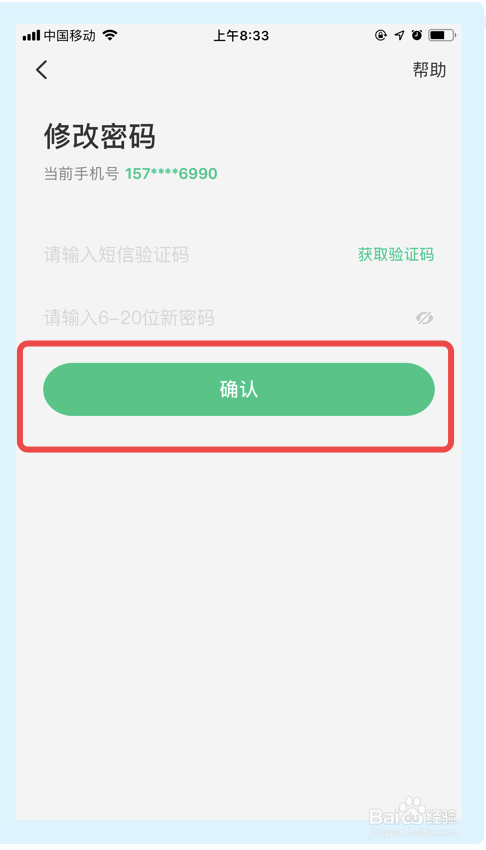 在接下来的界面,获取验证码,并输入新的密码,然后点击【确认】选项。