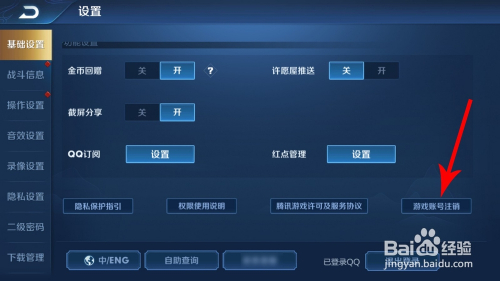 打开“设置-根本设置”界面后标的目的下滑动,然后点击“游戏账号刊出”。