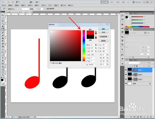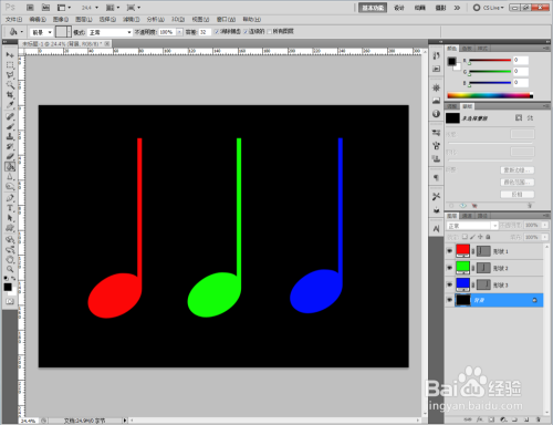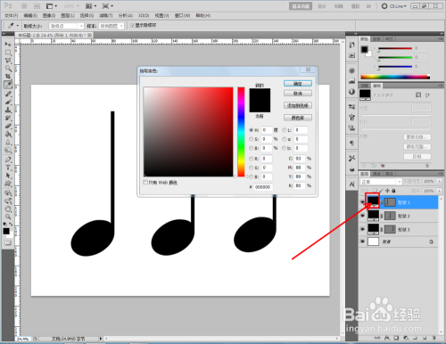 双击四分音符图案图层前面的色块,给图案设置分歧的颜色即可。