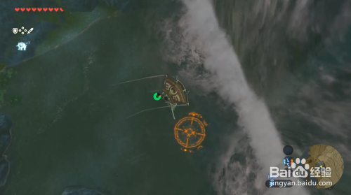 之后到火山的瀑布可以看到水里的机关 我们需要先用米法给林克的衣服 爬上瀑布 飞到空中