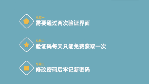 - 6需要经由过程两次验证界面;验证码天天只能免费获取一次;点窜密码后服膺新密码。