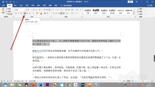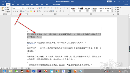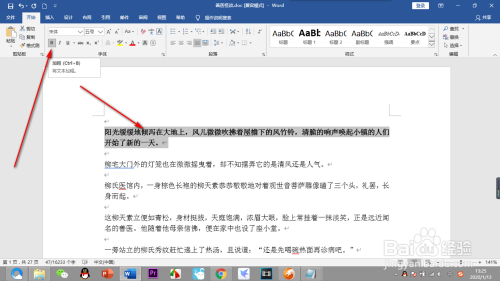 5.加粗的号令也是一样的,选中文字,在字体栏中找到加粗按钮,点击一下,文字就被加粗了。