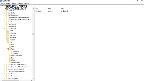 - 5找到“excelsheet8”、“shell”、“open”、“command”。