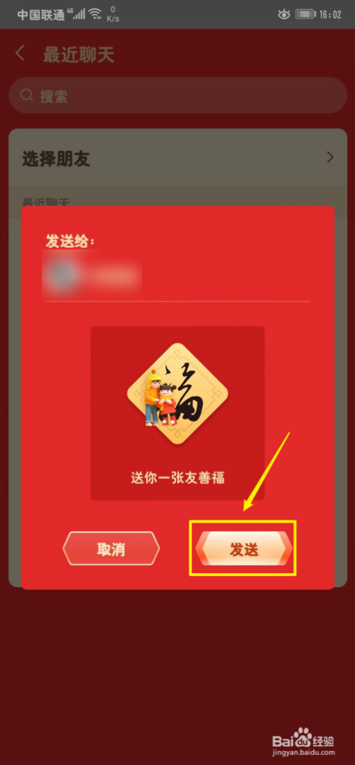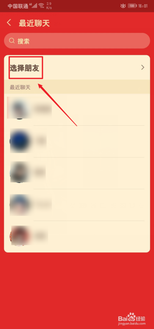 5、点击选择赠予的老友;