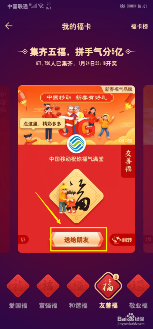 找到一张需要赠予的福卡,点击福卡界面中的“送给伴侣”选项。