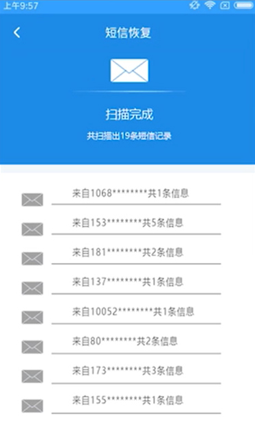 - 6数据扫描完当作后即可看到恢复的短信。