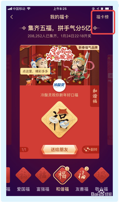 5.在【我的福卡】界面,点击【福卡榜】,完当作以上步调支付宝app即可查看福卡榜。