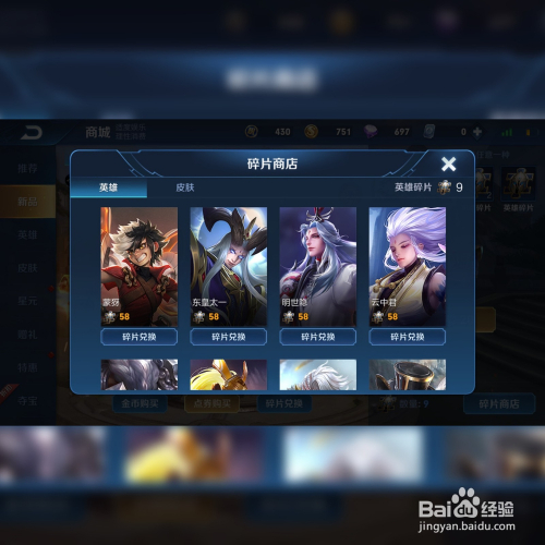 可以看到,碎片商铺中可以免费兑换英雄,只要在活动中收集足够的碎片就可以或许免费兑换到响应的英雄