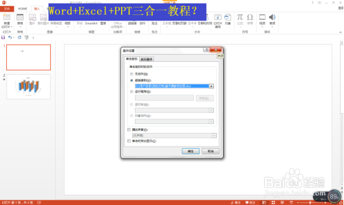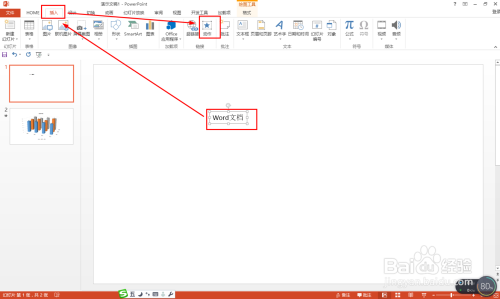 利用PPT插入动画的方式与EXCEL或WORD文档连系利用。如图点击选择”Word文档“文本框——点击插入——动作
