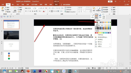 在幻灯片的上方框选出一个合适的黑色边框,颜色可经由过程右键——填充进行点窜。