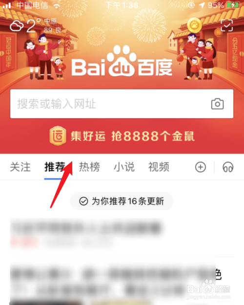 打开手机百度进入后,点击上方的集好运活动进口进入。