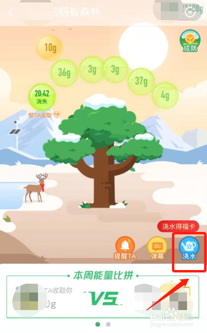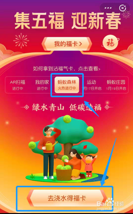 别离点击“蚂蚁丛林”和“去浇水得福卡”。