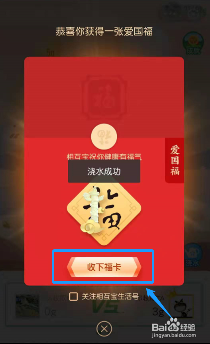 浇水当作功后,系统会主动送出福卡,点击“收下”即可。