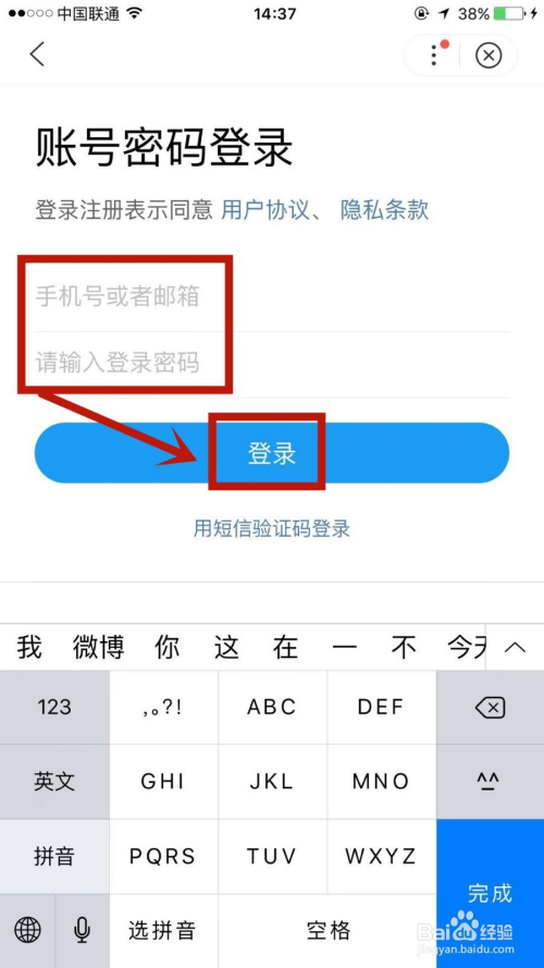 3.点击我的,输入本身微博的账号与密码后点击登录。