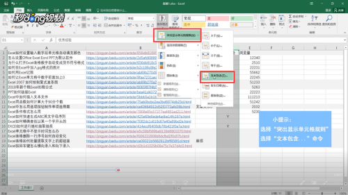 - 3选择“凸起显示单位格法则”内的“文本包含”号令。