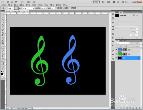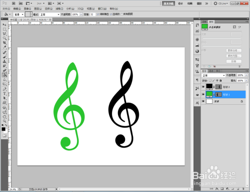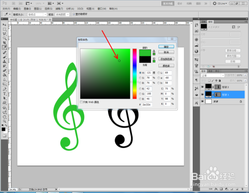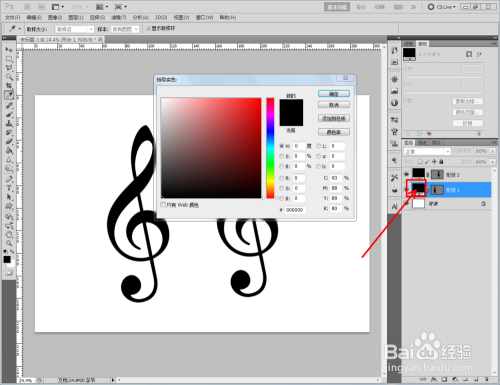 双击高音谱号图案图层前面的色块,给图案设置分歧的颜色即可。