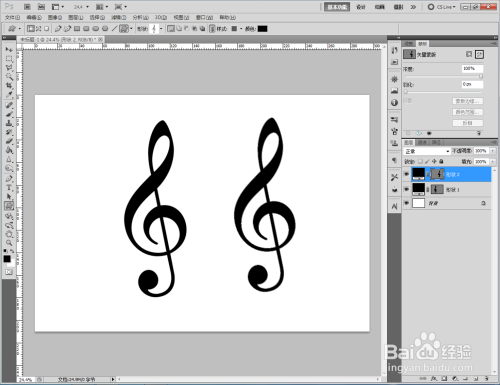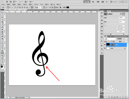 选择外形选项栏中的高音谱号图案,绘制出高音谱号图案;