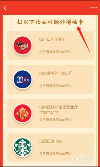 第一:AR扫福,扫描肆意“福”字得福卡。扫描福字的体例良多,好比对联、门贴、灯笼、包装袋、手写福字。