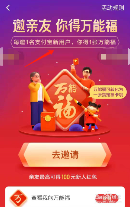 第二:邀请亲朋得全能福。全能福可以转换为五福中肆意一个福。