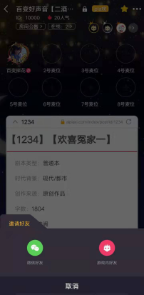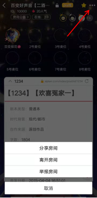 选择PIA戏模式后,房间会呈现该界面。开设房间的房本家儿即为本家儿持人,我们点击“换本”,来选择想要PIA戏的脚本。