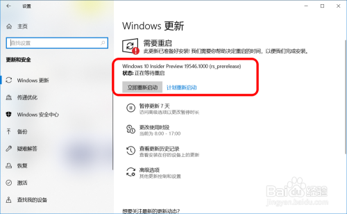 设置装备摆设Windows 10更新完当作后,重启第一次;