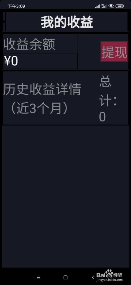 然后我们就可以看到我的收益是几多了,若是有收益还可以点击旁边的提现按钮进行提现。