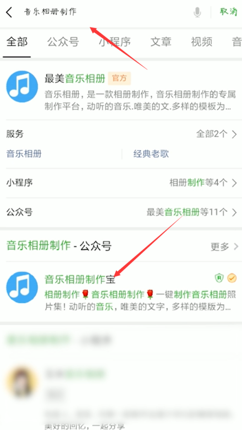 - 2搜刮“音乐相册建造”,点击“音乐相册建造宝”。