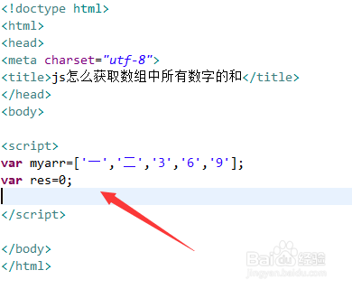 新建一个html文件,定名为test.html,用于讲解js怎么获取数组中所稀有字的和。