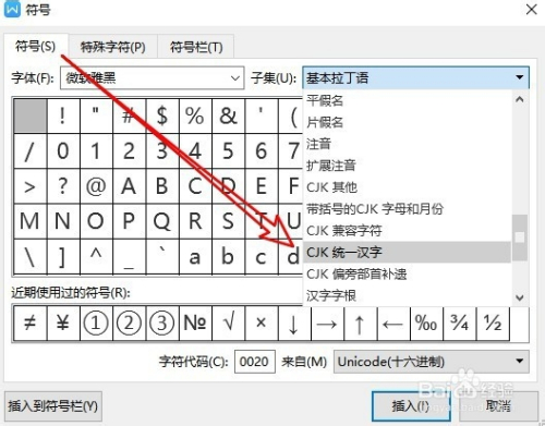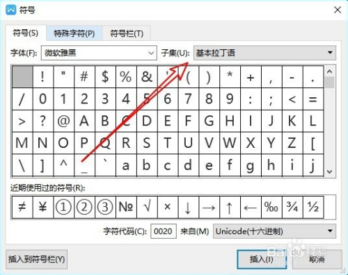 4、然后在打开的符号窗口点击本身下来按钮。