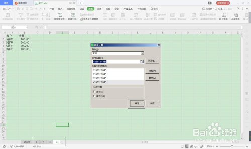 第六步,1,2,3,工作表添加完了,就点击确定,这样子统计表的金额就算出来了