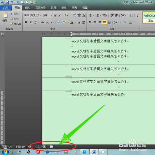 第四步:查看状况栏发现有“改写”字样,此时输入文字后面的文字会消逝。