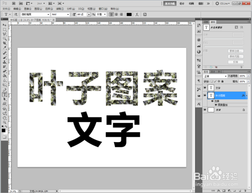 点击【文字东西】按图示设置好文字各参数后,完当作“叶子图案”和“文字”文字建造;