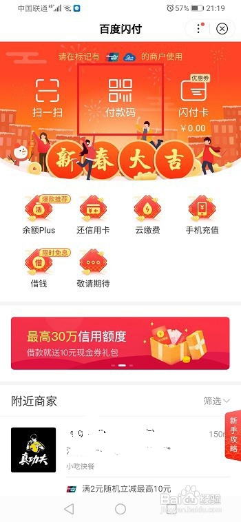 第三步进去百度闪付之后,可以直接利用百度闪付进行付条目,如下图所示: