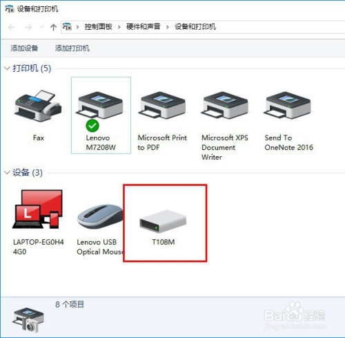第二步:再看“我的电脑”,多了一个U盘!此刻打印机酿成了一个U盘。就是下图中的T108M,这个U盘里装着打印机的驱动程序(下面会用到)