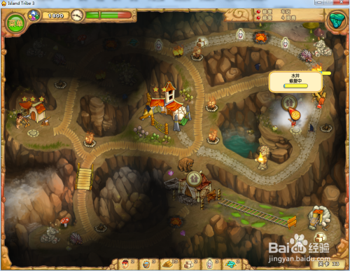 操纵工人收集下方的资本,然后修复右面的图腾,再将右面的水井修复好。