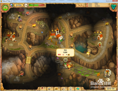 2、修复左面的木桥,点燃篝火,进级我们的营地。