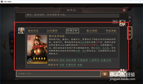 - tips:若是没有该武将也可以直接打开尚书台输入曹纯发送。