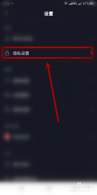 5、找到并点击【隐私设置】