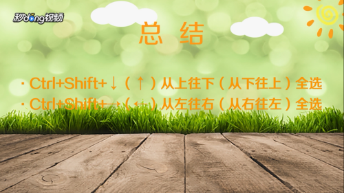 - 2选中某一行或某一列时,可选择“第一单位格”,按“ctrl+shift+↓”,即可从上往下全选。
