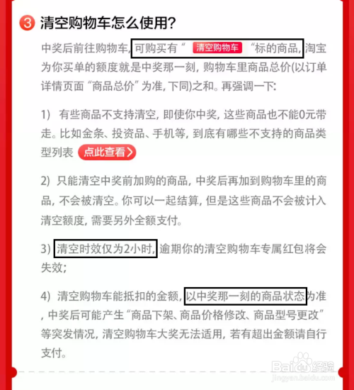 ①若是您抽中“清空购物车”,淘宝将会帮您清空带有【清空购物车】的商品。