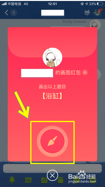 1.首先进入QQ,在聊天界面找到关于浴缸的QQ绘图红包并点击打开。