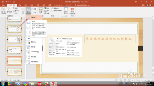 第四步,在插入占位符中,我们可以选择插入的格局,这里我们选择内容占位符,如下图所示: