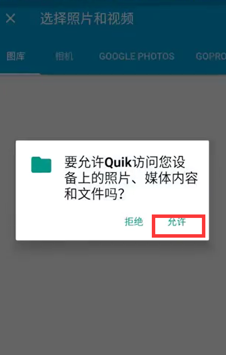 - 1下载好Quik后,点击“许可”毗连照片。