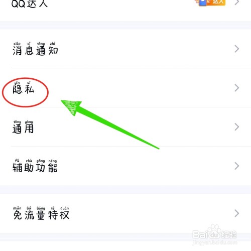第三步:点击设置中的“隐私”。