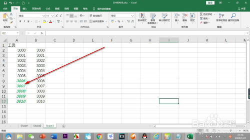 4.点击之后可以看到选中的数据中>3005的数据被筛选出且添加了颜色,可以或许被我们更好的预览和查看。